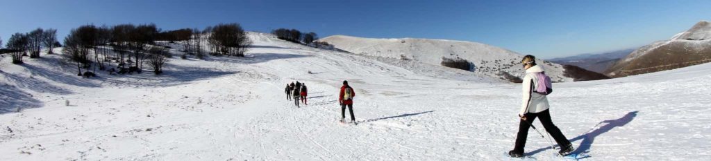 Partiamo dall’Umbria, andiamo a percorrere un tratto di strada sul valico marchigiano e arriviamo nel Lazio a ciaspolare attraverso un sentiero ben delineato, ma ricco di aspetti naturalistici.