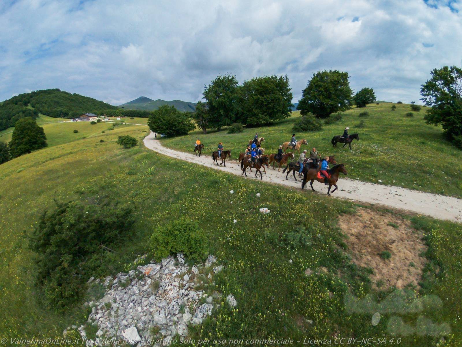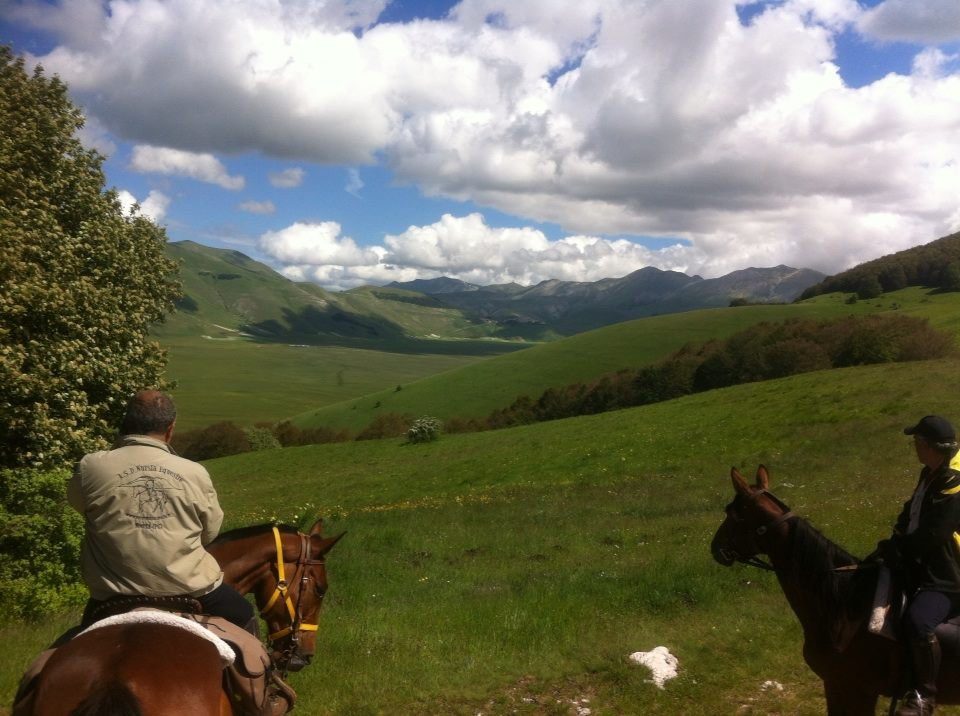 A cavallo nel parco nazionale dei monti sibillini , tutti i giorni su prenotazione , con un minimo di due persone ed un massimo di sei