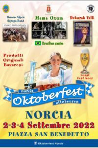 Torna il tradizionale appuntamento di settembre con l’ Oktoberfest a Norcia, da venerdì 2 a domenica 4 settembre, in piazza San Benedetto, dopo una sosta forzata di due anni dovuta alla pandemia.