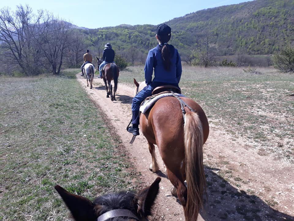 Partenza dal centro ore 10 circa percorrendo sentieri e mulattiere un tenpo percorsi da pastori per la transumanza sarete rapiti da uno scenario mozzafiato , arriveremo in agriturismo dove faremo una sosta per un pranzo , dopo il pranzo percorrendo sentieri diversi dall’andata faremo rientro al centro con arrivo previsto alle ore 17/18 circa. Costo euro 110 a persona ( comprende nolo cavallo con guida pranzo in agriturismo )