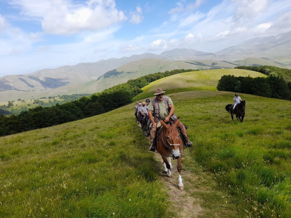 Chi non ha mai sognato di salire sulle montagne a cavallo, come in un film d’avventura ? in groppa ad un cavallo oppure con i fidati muli questo sogno può avverarsi ed essere un’esperienza indimenticabile il mulo definito erroneamente testardo, è un animale dal carattere mite, umile e leale, adatto a lunghe e lente passeggiate nella natura, simbolo del turismo responsabile, di quel turismo che fa della “lentezza” un valore: muoversi adagio, infatti, consente una maggiore attenzione alle identità e alle economie locali, un incontro vero e proprio con l’ambiente. Instancabile e affidabile, si inerpica senza difficoltà su ripide mulattiere, Questo trekking di montagna è concepito per essere fatto da tutti con un minimo di esperienza .