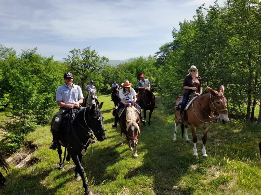 Chi non ha mai sognato di salire sulle montagne a cavallo, come in un film d’avventura ? in groppa ad un cavallo oppure con i fidati muli questo sogno può avverarsi ed essere un’esperienza indimenticabile il mulo definito erroneamente testardo, è un animale dal carattere mite, umile e leale, adatto a lunghe e lente passeggiate nella natura, simbolo del turismo responsabile, di quel turismo che fa della “lentezza” un valore: muoversi adagio, infatti, consente una maggiore attenzione alle identità e alle economie locali, un incontro vero e proprio con l’ambiente. Instancabile e affidabile, si inerpica senza difficoltà su ripide mulattiere, Questo trekking di montagna è concepito per essere fatto da tutti con un minimo di esperienza .