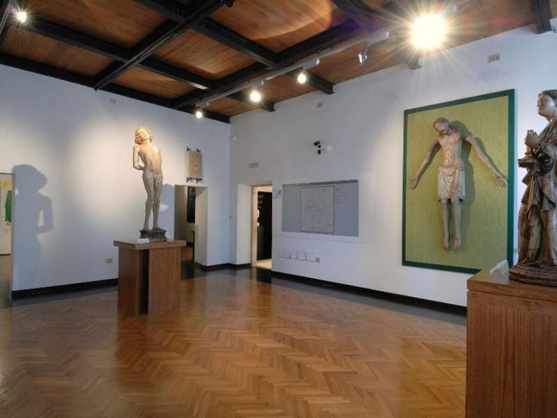 La raccolta ospitata all’interno del seicentesco Palazzo Santi vanta una serie di preziose terrecotte policrome (XI-XVI secolo) ed uno straordinario nucleo di sculture, che comprende opere lignee, in terracotta, stucco e pietra databili tra il XIII e il XV secolo, rare testimonianze del patrimonio medievale di arte sacra. Di rilievo è la Madonna di Poggioprimocaso, monumentale esempio della fiorente produzione locale di madonne lignee policrome. La raccolta si completa idealmente con la statua Tobia e l’Angelo, di scuola marchigiana, esposta in una teca nel coro della Chiesa di Sant’Antonio Abate.